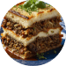 Moussaka (Traditional Greek dish layered slice of aubergine, potatoes, with rich tomato beef sauce and topped with creamy bechamel sauce).